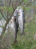 Die Forellen waren 46 cm bzw. 42 cm groß und gingen, trotz ihrer schweren Verletzungen, normal an den Haken.
