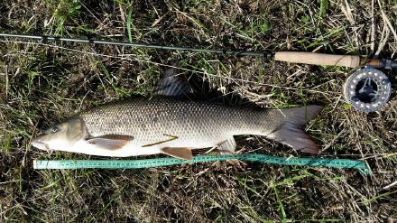 Eine schöne BARBE. Gefangen von einem Tageskartenfischer (Stefan Heußer).