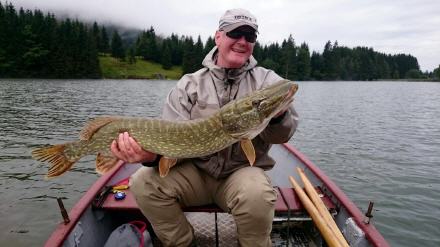 .......und wieder hat Mario Corti zugeschlagen.....Diesmal ganz edel mit Fliegenrute und Hechtfliege (28 cm).